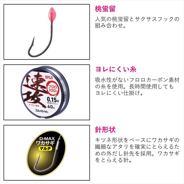 ダイワ 仕掛け クリスティアワカサギ SS誘惑ミドル 桃蛍留 マルチ6本-0.5号