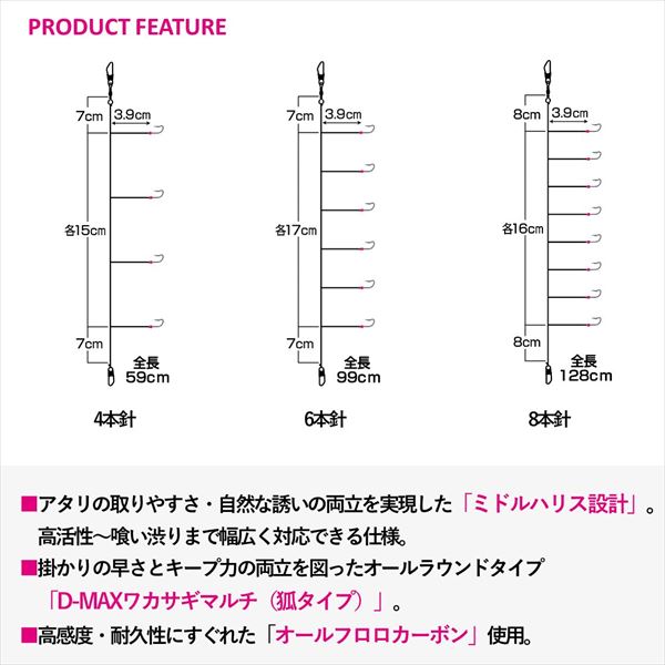 千島克也監修、紫外線発光する桃蛍留で高アピール。高活性〜喰い渋りまで対応するミドルハリス設計。