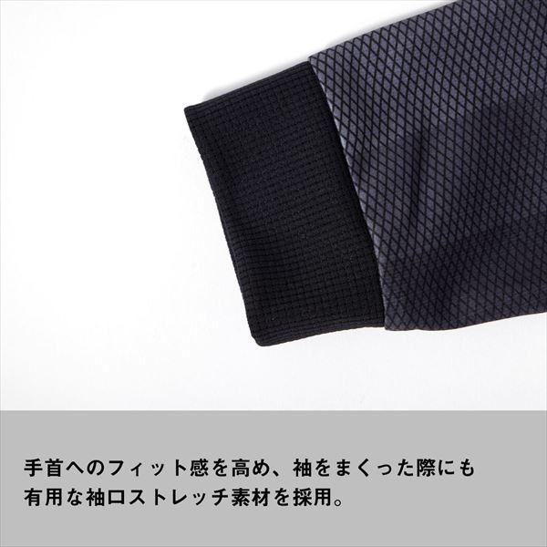 ハイネック仕様で夏場の釣りを快適にサポート。UVケアと吸水速乾を両立した快適素材。首まわりの日焼けを軽減するハイネック仕様。手首へのフィット感を高め、袖をまくった際にも有用な袖口ストレッチ素材を採用。濡れた状態での脱ぎ着のしやすさと軽量性を兼ね備えたハーフジップタイプ。