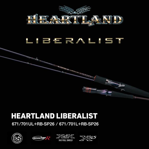 ターゲットに外道無し。その時その場所で釣れる魚たちと自由気ままに遊ぶ、村上晴彦の精神を具現。淡水・海水も問わない魚種分類不能のザ・ルアーロッド、それがHEARTLAND LIBERALIST。■671/701UL+RB-SP 26・・・MEGATOP Rフルソリッドブランクを採用し、ショートバット、ロングバット2本のバットを備えた、リベラリストの新たな象徴となるモデル。ショートバットではスモールプラグを快適に扱うロッドとして、ロングバットでは80g前後のジグを快適に操るジギングロッドとして幅広いターゲットに対応。ひとたび魚をかければ、その細身のブランクからは想像できない反発力でスリリングながら余裕のあるファイトを実現。