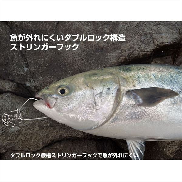 魚が外れにくいダブルロック構造ストリンガーフック。ダブルロック機構ストリンガーフックで魚が外れにくい。ストリンガーフックサイズ145mm