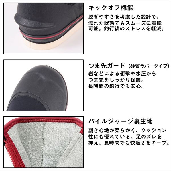 羊毛の力で川底を制す。安心と信頼の日本製。鮎釣りに最適化された専用羊毛フェルトを搭載した、ダイワの羊毛スペシャルジョグ。抜群のグリップ力と快適な履き心地に加え、つま先ガードやストラップなど実釣に必要な機能を網羅。高級感ある仕上がりと日本製ならではの信頼性で、足元からアングラーのパフォーマンスを支えます。