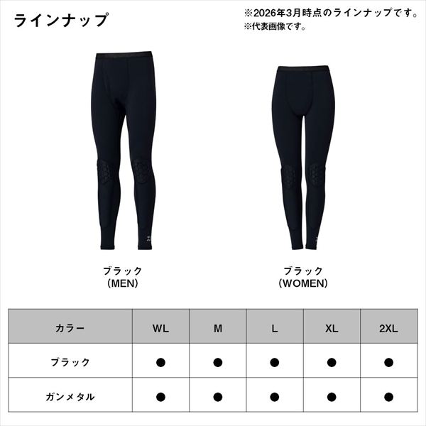 ヒザやスネを防護する衝撃吸収パッドを搭載したハイスペックアンダータイツ。本体生地には接触冷感性/UVケア(UPF50+)/吸水速乾性のあるICEDRYと耐摩耗性に優れたCORDURA素材を掛け合わせた生地を採用。膝部分には衝撃吸収パッドを搭載。ウェストゴムはメッシュタイプを使用し不快な汗蒸れを軽減する。前開き付き。(ウィメンズサイズは前開き無しの仕様)ハーフパンツと着合わせて鮎ライトスタイルやロックショアフィッシング、船釣りなどの膝を保護したいあらゆるシーンにおすすめのアンダータイツ。