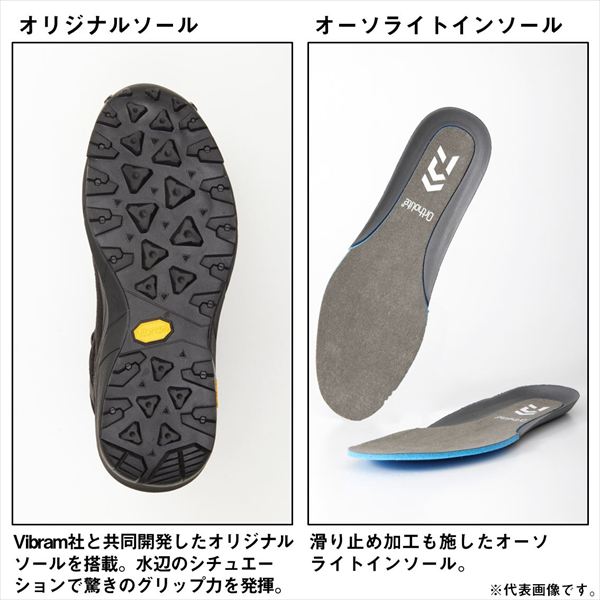おかっぱりの釣りに最適!ゴアテックスブーティーを採用した透湿防水シューズ新登場。ゴアテックスブーティーを採用した透湿防水シューズ。Vibram社と共同開発したオリジナルソールを搭載。Vibram MEGAGRIPは水辺のシチュエーションで驚きのグリップ力を発揮。(Ortholite オーソライト)インソールを採用。歩行時のパフォーマンス性アップ。オープンセル構造により高い通気性。従来のウレタンフォームに比べ、へたりにくいので、優れたクッション性がより長く持続します。軽量性、クッション性(※軽量で優れたクッション性により快適性をさらに高めます)インソールの表面を滑り止め加工することで、内部の足のズレを軽減し、履き心地向上。スピードフィットシステム搭載。紐結びが不要!シンプルな動作でしっかり履けます。クッション性が高く、非常に柔らかいので履き心地、屈曲性向上。足形を見直し、履き心地を追求した新型オリジナルラスト(足形)。防水性が高いハイカット仕様