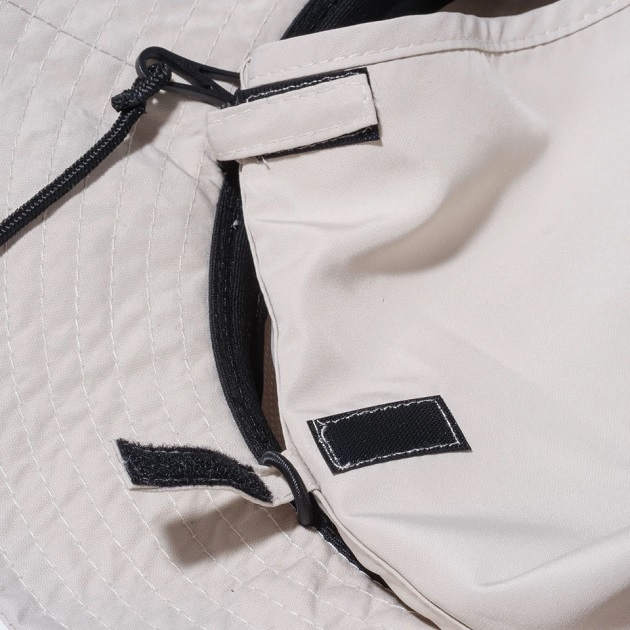 取外し可能な日除けを配備した新登場のシリーズ。ボディの一部にメッシュ素材を配し、通気性と水捌けを高めています。スウェットバンドには、抗菌効果のあるMICROER を採用。シルエットはライニングを取り除くことで、軽量かつ着用時の蒸れが軽減されたアドベンチャー。通常はメタル素材が用いられるアイレットは刺繍仕様です。