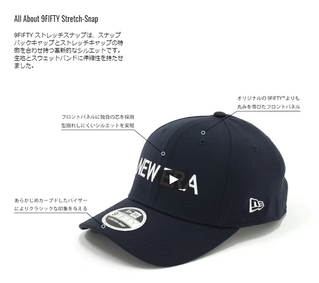山をモチーフにデザインしたロゴの織ネームをフロントに配したシリーズ。スウェットバンドには、抗菌効果のあるMICROERA を採用しています。スナップバックキャップとストレッチキャップの特徴を合わせ持つ9FIFTY ストレッチスナップ。生地とスウェットバンドに伸縮性を持たせています。
