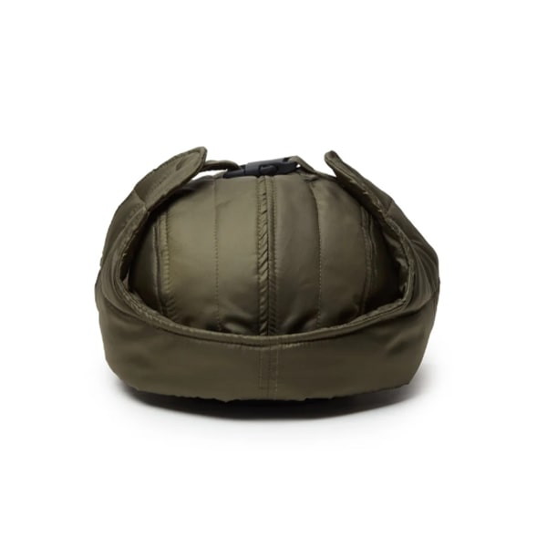 一部リサイクル原料を使用し、環境を配慮したフッ素フリーのC=ZERO撥水加工を施したリップストップ素材を表地に採用。フラップの留め具部分はグローブ着用時でも着脱が容易なストラップバックルのアウトドア仕様。トラッパーは一般的にはフライトキャップに分類され、防寒性の高さから、ストリートのみならずウィンタースポーツシーンでも着用者が多いアイテム。