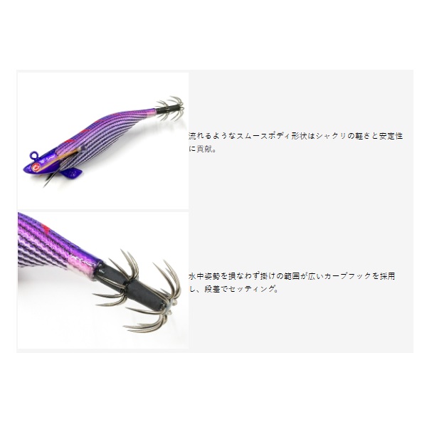 ティップランナーチビに、「ラトル搭載」高アピールモデル登場!低活性時にベイトのサイズを選ぶような状況に合わせた、2.5号。ダウンサイジングに伴い、針のバランスを見直し、フックはシワリ形状を採用。ティップランナーの長所を維持しつつ、ダウンサイズ化にあたり、必要な要素を再検証。よりシビアな状況での答えを導き出すアイテム。ティップラン専用エギ、ティップランナーは、フォールの速さ、シャクリの軽さ、ダートの切れの良さ、流水時の安定性、停止時の姿勢、針掛かりの良さ、等その他諸々 ティップランに必要とされる要素全てを独自に検証し、最善と呼べる性能を追求。その結果、まさに「熟成」と呼ぶべき進化を遂げ製品化された究極の専用エギである。