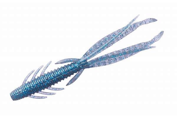 ドライブシュリンプは、エビが細い手足を忙しく動かしながら移動する様、さらにその際に発生する微細な振動までもリアルに表現する。フォールやスイミング時に発する逆手の超高速振動が、脚、ヒゲ、独自形状のフラットテールに伝達されることでボディ全体を小刻みに震わせる様子は、水中を漂いながら水を掻くエビそのもの。