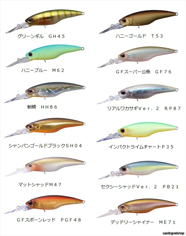 ハイカットFは、フローティングならではのスナッグレス性能を生かし、点在するウィードエリアや立木、ゴロタなどのあらゆるライトカバーで通年使用できるオールラウンダー。かと言って、決して汎用性だけがとり得ではなく、むしろスペシャリティな役割を確実にこなすめに開発された。例えば、水深0.5―2.0mほどのシャローにベイトフィッシュが多いながらも、クランクベイトやスピナーベイト、さらにはワームでもバイトに持ち込みにくい状況がある。特に低水温期は甲殻類のベイトが影を潜め、フィッシュイーター化する。それらのベイトが回遊しやすいオープンなシャローエリアでは、広範囲をテンポよくカバーでき、適度なアピール力とリアクション効果の高いシャッドの独壇場となる。中でもハイプレッシャーなクリア―ステインウォーターでは、リアルシルエットでタイトアクションが圧倒的に有利。こんなシチュエーションがハイカットFの戦場である。フローティングの利点は、例えばウィードにタッチした際に浮かせてかわしたり、ボトムノックをよりライブリーに行なうことなど、ストラクチャーやボトムにより接近したアプローチが可能となる。もちろんフローティングシャッドであれば良いという訳ではなく、ハイカットFのリップ形状は、先端がラウンドタイプ。他のSPシャッドに比較的多い先端が鋭角に尖ったリーフ型だとボトムノックで、リップの先端を支点に横になり、片側に流れて泳いでしまう。また、その際アクションも生命感を失い横に流れすぎてスタックすることさえある。ハイカットFは、このリップ形状だけでなく特殊な内部構造でも姿勢の復元力を高めている。例えばボディの軽量化で、重心移動用の内部レールがない固定重心専用設計と、強度と軽量化を両立しハニカムスーパーHPボディ(PAT.)によってABS樹脂の限界を超える軽量化に成功。さらにその分を低重心化したウエイトに加算したことによって、スモールシャッドながら復元力の強さと瞬発的な泳ぎだしの良さを実現した。ハイカットFはタフコンディション下でパイロットルアーとしてサーチ的な役割を果たせる上に(これでしか喰わせられない)という切り札にもなり得るハードベイトである。