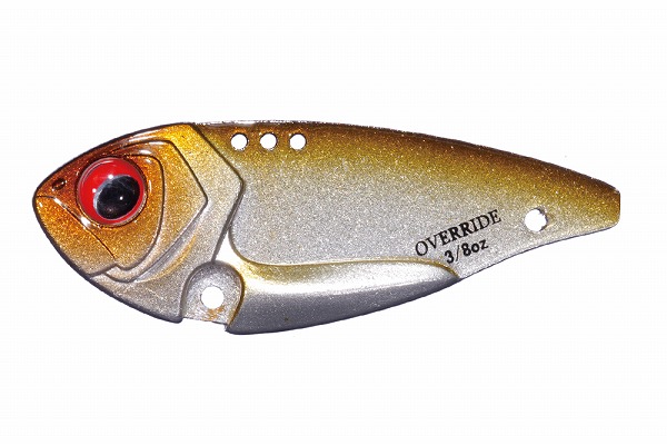 多彩でナチュラルなスライドフォールと垂直リフトでの強いバイブレーションの緩急は、ハイプレッシャー時に切り札的にバイトを得られる上に、ビッグバスへの効果も高い究極のリアクションベイトである。DETAIL:フロントアイタダ巻き用アイで水平に近い姿勢で早巻きに適している。ノーマルポジションアイタダ巻きでは斜め姿勢でミディアムリトリーブを中心に適応できるスピードの幅が広い。リフト&フォールでは、泳ぎ出しが早く最も安定したバイブレーションを発生し垂直にリフトする。最も汎用性の高いアイポジションである。リアアイタダ巻きでは垂直に近い姿勢でスローリトリーブに適している。水面直下やボトムで土煙をたてて泳がせるなど根掛かりを回避しながらスローにレンジキープさせやすい。リフト&フォールではキックバック気味にリフトする。