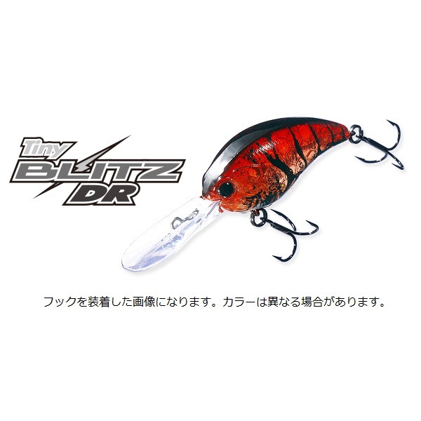 一般的なシャッドプラグに比べ横幅が確保された縦扁平形状のセミフラットボディと先端が幅広な形状は、スナッグレス性能の向上に貢献。浮きスピードはタフコンディションを想定した速すぎ無い設定でビッグバスも視野にリアフックを#6サイズに変更してもフック絡みせず、フロントとリアのフックを#6サイズに変えてもフローティングをキープ。スモールクランクベイトにありがちな自重不足、空気抵抗となるロングリップ形状などから生じるキャスタビリティー&アキュラシー低下といった弱点を完全克服し、ボート&オカッパリ問わずフィールドで重宝する実戦仕様のスモールクランクベイト、それがタイニーブリッツDRだ。