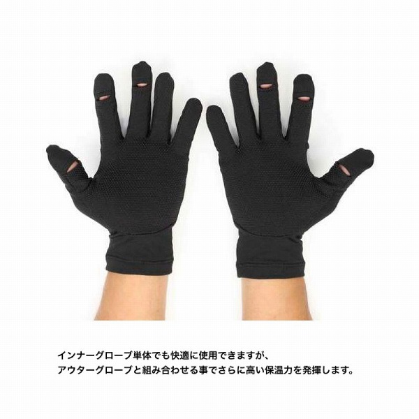 細かい作業時に指先が出せるフードタイプのインナーグローブ全方向ストレッチ素材で、高いフィット感を実現 薄くなめらかな生地で、1年を通して快適に装着できるインナーグローブです。インナーグローブ単体でも快適に使用できますが、アウターグローブと組み合わせる事でさらに高い保温力を発揮します。手の平側には高グリップを実現する滑り止め付き。 ※数値はすべて概寸です。※商品の仕様は予告なく変更する場合がございます。ご了承下さい。※掲載している商品の画像は代表画像を表示しています。また実物と色が違って見える場合があります。あらかじめご了承下さい。
