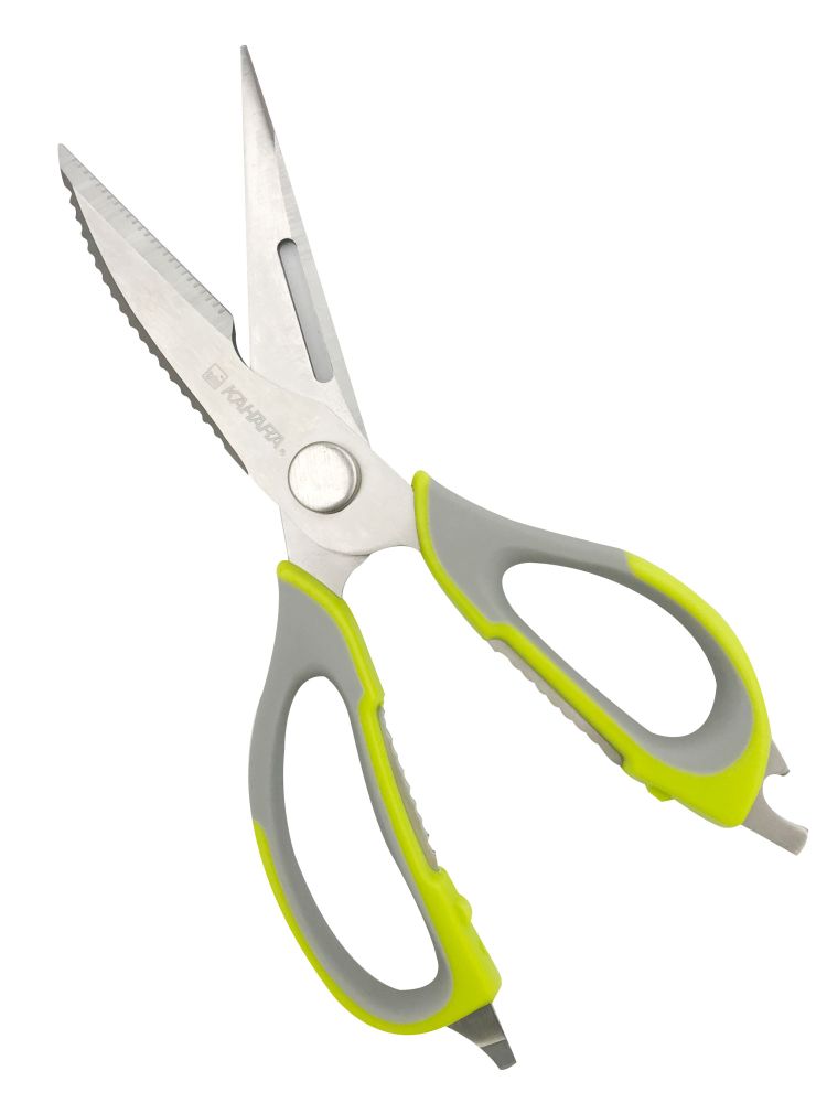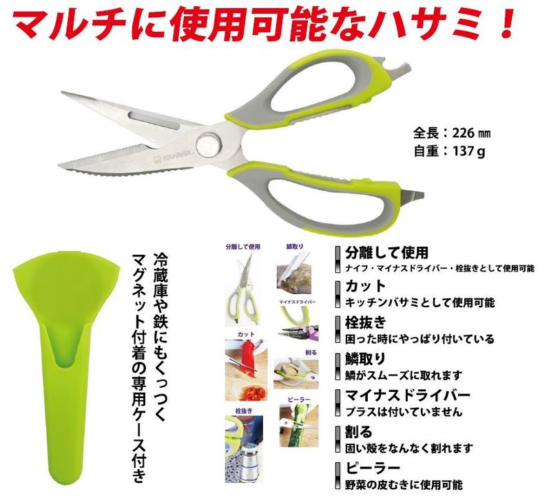 キャンプ・アウトドア用などマルチに使えるキッチンバサミ。マグネット搭載の専用ケース入り