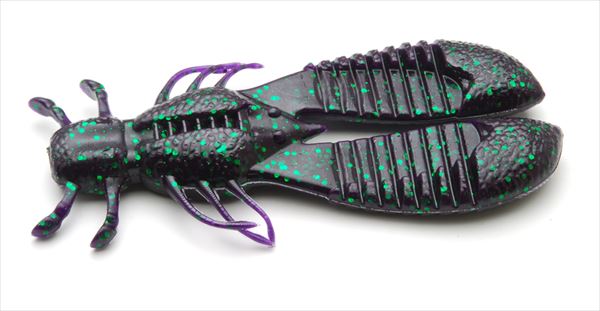 EGU CHUNKの着想は、ラバージグやフットボールヘッド等に装着したソフトベイトを、ラインスラックを弾きながら中層スイミングさせるジグストやミノストと言われる釣法から生まれました。今までに類を見ないほど分厚く重い爪が生む強烈なパンチを、しなやかで幅広いアームが逃さず受け止め団扇のごとく天地左右遠くまで水を弾き飛ばす。それにより生み出される強波動は従来のワームを遥かに超える集魚力を発揮。しかし、ただそれだけでは使いどころの限られた扱い難い物になってしまうため、軽いアクションでも敏感に動くサイドレッグ各種や、アクションの余韻を生む浮力と甲殻類ライクな微波動を生む腹部の薄板リブなど随所にギミックパーツを盛り込む事でフォールやズル引き、スイミングやステイに至るまでいついかなる時もバスを誘い続け、緩急の効いたアクション変化でバイトトリガーにスイッチを入れるワームに仕上げています