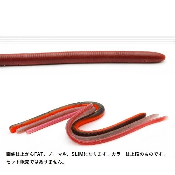 ストレートワームはその名の通り棒状の単純なワームではありますが、単純だからこそ奥が深く、太さや長さのバランスが違う事で全く別の表情を見せる用途多彩なワームでもあります。その為、全国各地の様々なフィールド条件を考慮し、太さや長さのバリエーションを揃えるとかなりのアイテム数が必要。そこにカラーバリエーションまで追加するとストレートワームという1つのカテゴリーだけで莫大な量になってしまう。そんなストレートワームに対する煩わしさを解消する事をコンセプトに開発されたのが「アジャストするストレートワーム=アジャストレート」。まず、太さごとに経験上ベストな数値で導き出した「極細・中・太」の三サイズをラインナップし、長さを一般的なロングワームのMax寸法と言える12インチに統一。太さごとに必要な寸法のカットラインを設ける事で、状況に応じて瞬時に長さを調整し様々な状況にアジャストする事が可能となりました。