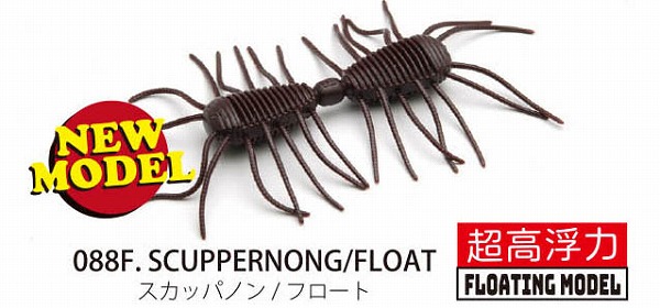 高浮力モデル。2WAYはその名が示す通り魚の状態やシチュエーションに合わせて幾通りもの使い方ができるソフトベイトです。開発段階から通称「サイト専用ワーム」と呼ばれていたように、サイトフィッシングにおいて類稀なる釣獲力を誇ります。最もオーソドックスな使用法は、そのままセンターの球体部にマスバリを掛けたショートリーダーダウンショット。シンカーを上下させるイメージでややゆったりと大き目にアクションを加えることで、ボディが「くの字」に折れ曲がりながらロールすることで多軸的ロールアクションを起こし、それに合わせてボディサイドから無数に生えた細いレッグが追従するため、極めて複雑怪奇なアクションを発生します。また、ボディに設置した深溝リング状のリブが大きく水を掴むため、小粒ボディサイズとは思えないブレーキ感とウォーターグリップ力、水押しを実現。見た目と波動のギャップで魚の口をこじ開けると同時に、アングラーに対しては高い操作感をもたらします。