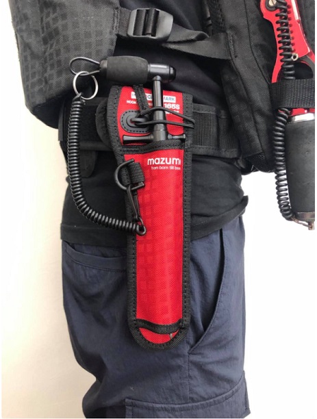 より便利にスタジオオーシャンマーク社のフックリムーバーを使うために開発された専用ホルダーです。フックリムーバーとは、針外しです。針を外す動作は人間だけでなく魚にとっても危険な瞬間です。魚が暴れて針が体のどこかに刺さればその1日の釣行は台無し、魚の口からルアーを無理やり外してエラを傷つけてしまうこともあります。怪我のリスクを軽減し、魚へのダメージも最小限に抑える。釣り人と魚を傷つけないために開発されたフックリムーバー。その専用収納アイテム。スムーズに収納するために計算された間口の形状です。エンド部はあえて切りっぱなしにすることにより、フックリムーバーホルダーの先端がどちらを向いていても対応可能、水抜けもいいです。脱落防止のコード等が取り付け可能なDカン付き。使用時はゴムループを外しておけばストレスなく自由に出し入れが可能です。移動時には落下防止のためにもゴムループをセットしてください。
