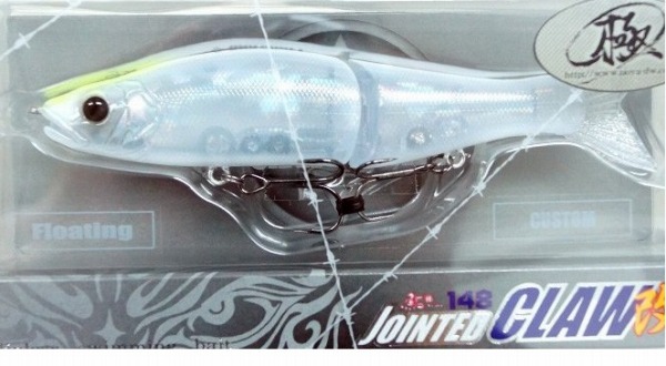 1年を通しビッグバスのベイトフィッシュとなるウグイを、ジョインテッドクローでリアルに表現しました。アクションは、オリジナルのジョインテッドクローが、ワイドでゆったりとしたS字を描いていたのに対し、ジョインテッドクロー改148は振り幅がやや狭くハイピッチなS字を描きます。これにより狭いポイントでもビッグバスに対して確実にアピールし、バイトに持ち込むことができます。また、オリジナルサイズよりもサイズをワンサイズ小さくしたことで、ビッグベイトにスレたポイントや野池でも絶大な威力を発揮します。