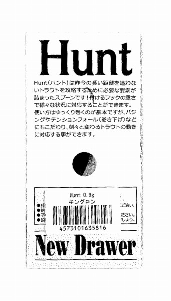 Hunt(ハント)は昨今の長い距離を追わないトラウトをこうりゃくするために必要な要素が詰まったスプーンです!付けるフックの重さで様々な状況に対応することが出来ます。使い方はゆっくり巻くのが基本ですが、バジングやテンションフォール(巻き下げ)などにもこだわり、刻々と変わるトラウトの動きに対応することが出来ます。