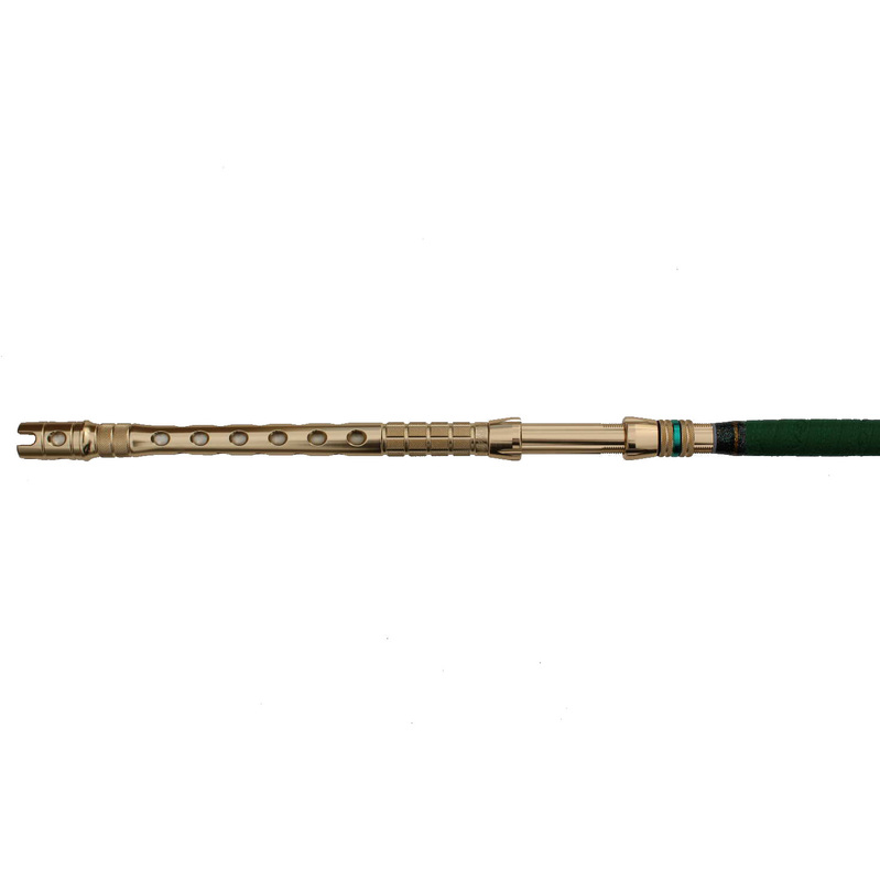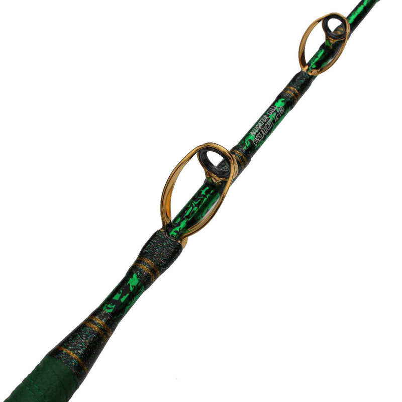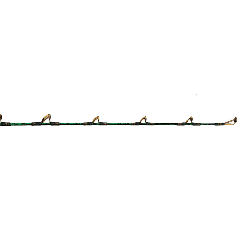 品番:12−160 全長:1.6m 継数:1本 仕舞寸法:1.6m 自重:約470g 先径:2.4mm 元径:12.0mm 錘負荷:80〜200号 適合ハリス:40号 <br><br> カラー詳細<br> チップ:黒/緑プルトス(オプション) ガイド下:黒/緑プルトス ガイド止め:035 ワンポイント:011×2(オプション) ガイド、リールシート、バット:ゴールド ATプレート緑(オプション)