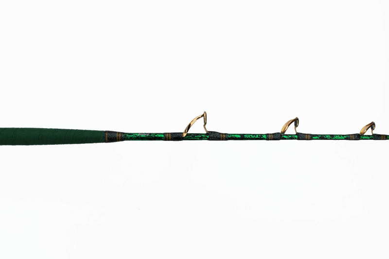 チップ:黒/緑プルトス(オプション) ガイド下:黒/緑プルトス ガイド止め:035 ワンポイント:011×2(オプション) ガイド、リールシート、バット:ゴールド ATプレート緑(オプション)