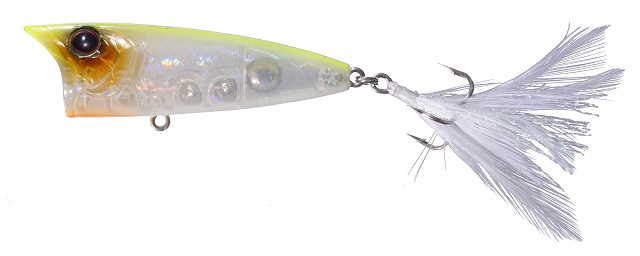 小型ポッパーの魅力は、水面で小魚や虫、エビやカエルなどをイミテートし静かな着水音と警戒されないボリュームでプレッシャーの掛かったバスでも興味を引き付けること。ラウダー50は、意図しない動きをさせず、水にしっかり絡ませるために小型ボディながら4ウエイトに行きついた。飛距離も出て水面で風に流されにくく、ライン抵抗で引っ張られないよう高比重で立ち気味の姿勢を選択。飛びに悪影響を与えない最大量のフェザー&ティンセルが着水音をソフトにし、水をしっかり掴み移動距離を抑え一点集中で誘える。サイズ以上のアピール力のために大型カップ&Break Water構造を施し、水面にフタをしやすくボコッというPOP音と飛沫&水柱のスプラッシュを実現した。こうして小さいが故に調整範囲が狭い小型ポッパージャンルの中で、その性能の限界を乗り越えることでこれまで以上の釣果をもたらす戦力となる。※掲載している商品の画像は代表画像を表示しています。また実物と色が違って見える場合があります。あらかじめご了承下さい。