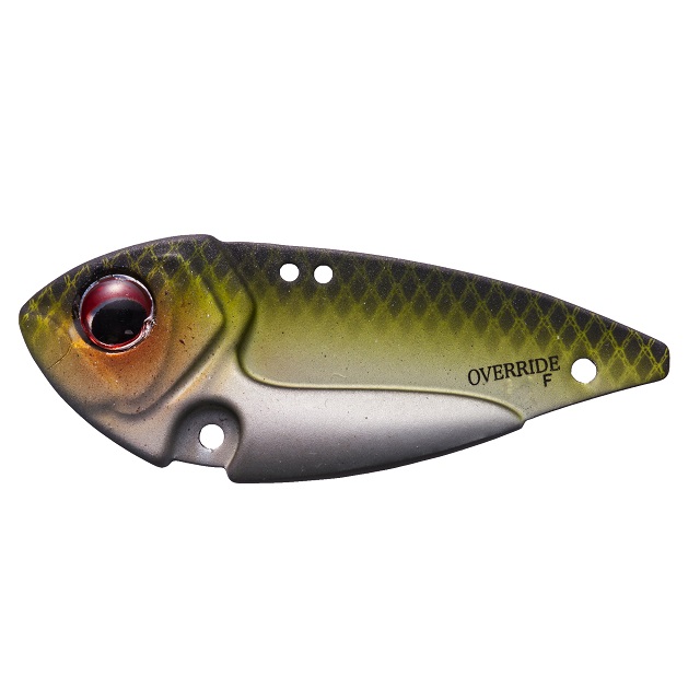 勝つためのオールシーズンメタル「オーバーライドECO」誕生オリジナルオーバーライドは真鍮プレート+鉛素材を使用し、素早い泳ぎ出しと生命感のあるスライドフォールを両立させた全5サイズのメタルバイブ。対してエコモデルはトーナメントで使用頻度の高い3/16ozと1/4ozの2サイズを開発。全長は鉛製と変わらないもののアイの位置などが変わるので真鍮プレート(0.7o厚)は新規作成。エコ素材のビスマス合金を使用し鉛製同様のアクションを目指しました。オーバーライドの形状は一見シンプルに見えますが、泳ぎ出しとスライドフォールの質を高めるために最終的に行き着いた形状です。シンプルに見えてアクションに関わる箇所が多数あるので素材を変えても調整幅が広く泳ぎを自在にコントロールできます。金属の比重がやや軽くなるのでファットになりますが、均等に増量するのではなくベストな性能を引き出すために、最も適切な部位に適量を適切な形状で増量。リフト時には素早く立ち上がり、キレの良くハイレスポンスなバイブレーションをし、スライドフォールではストレートスライドを中心に大きな右カーブまたは左カーブなど生命感があり単調にならない多彩なスライドフォールを実現しました。全性能を向上させたことで低水温期だけでなくオールシーズントーナメントで活躍できるメタルバイブが誕生しました。※掲載している商品の画像は代表画像を表示しています。また実物と色が違って見える場合があります。あらかじめご了承下さい。