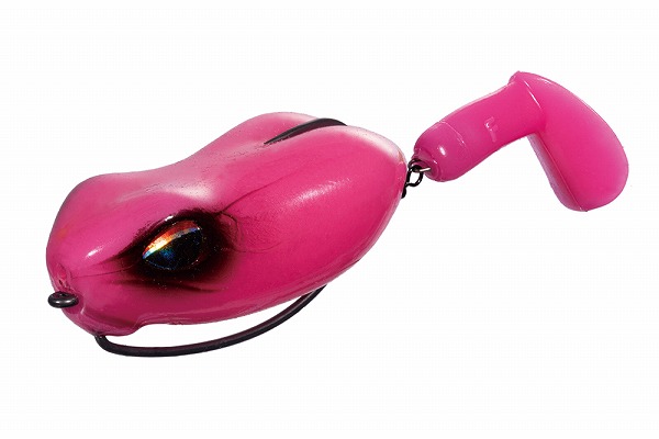ドリッピーはフロッグの常識を一新させる革新的フロッグワー ムです。ルアーブランド「テッケル」と共同開発したドリルテー ルは、ただ巻きでは回転しながらベイトの群れがパニックを起 こしたかのごとく飛沫をあげ、ジャーク時にはポッパーやダー ターのように空気を孕みながらスプラッシュし強烈にアピール します。またピンスポットでは手前に寄りにくくネチネチとし たスローな誘いも実現。ウェイトは約11gでML〜Mパワーの ベイトロッドで快適にキャストからアクションまで可能。更に シングルフックと中空構造&マテリアルの柔らかさで、PEライ ンを使わずともフロッグやワーム感覚以上のフッキングの良さ が際立ち、フロッグ専用タックルを必要としません。可愛いルッ クスとは裏腹に、誰もが使いやすく釣れる超実戦仕様のドリッ ピー。こいつでケロケロと鳴きながらアクションさせれば、バ スのもんどりバイトでエキサイティング間違いなし!!