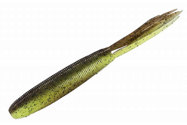 フィールドコンディションが年ごとに変わる昨今、柔軟な対応の必要性からドライブショット4インチが誕生。ドライブショットは、手返しよくカバーの種類を問わずストレスレスなバックスライド専用ワームである。ドライブショット4インチは4.5インチ(2020年発売)のフラスカートのボリュームを微量に抑えつつボディの長さと幅をサイズダウンすることにより、キックバックアクションによる強い水押しを損なうことなくデザイン。自重は4.5インチと比べ40%減の約6.3g。水推しの力を維持しつつのサイズダウン化により、小型サイズの手長エビや小魚を捕食している状況や、トーナメントや休日によるハイプレッシャー時に真価を発揮。ドライブショット特有のショットリグ(ネイルシンカーをネイルホールに入れたリグの呼称)では、複雑なカバーや水生植物の僅かな隙間へのプレゼンテーションを可能にする。ドライブショット4インチはバックスライドのフィネス領域を網羅し、バックスライド戦略を完遂させる。