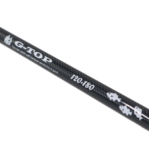 標準全長:1.8m 仕舞寸法:96cm 継数:2 標準自重:160 先径(mm):1.3 元径(mm):13.4 カーボン繊維(%):69