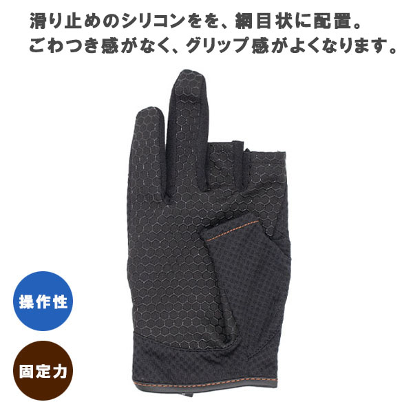 フィッシンググローブ 吸汗速乾 シリコン 釣り 3本カット