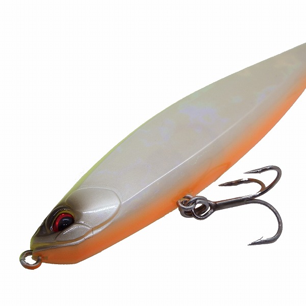 全長:80mm 重量:8.0g フック:#8 リング:#2.0 ※使用するスナップサイズ、リーダー号数、または、水域の塩分濃度によっては、シンキングになることもあります。