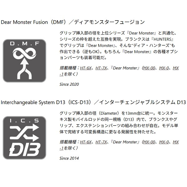 「パイオニア」開拓者は、文字通り新たな地平を切り拓く。ひと言で言えばモンスターバーサタイル、使うルアーを選ばず、パイクや各種ラテス(アカメ属)、タイメン(イトウ類)など、こと地に足つけた岸釣りと相性が良い。仕舞寸法50cm以下、全ダブルフットガイドという旅竿の必須条件をクリア、旧時代のモバイルロッドの着眼点「携行性」「耐久性」の先、新時代のトレンド「拡張性」に主眼に据えた。シンプルイズベストな5ピースで、コストパフォーマンスにも還元。その上で、モデル名末尾の「X」は……DearMonsterおよびオプションパーツ群に互換し、拡張性は無限大に広がる。
