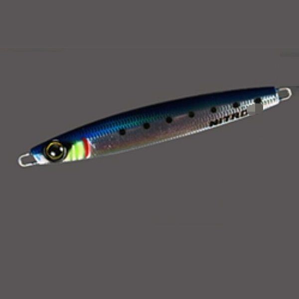 スライドアクションを得意とするセンターバランスジグニトロのショアキャスティングバージョン。センターバランスでありながら空気抵抗の少ない薄いボディはロングキャストが決まりやすいだけでなくジャーク中の引き抵抗を軽減させる。軽いジャークで左右にスライドし、イレギュラーな平打ちフォールは青物から根魚まで幅広いターゲットを魅了する。フロントにティンセル付きシングルフック、リアにトリプルフックを標準装備することで即実践投入可能。スーパーライトショアジギング(SLS)からライトショアジギングまで幅広いゲームに対応するスライド系キャスティングジグである。