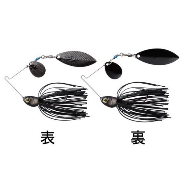 一般的なブレードとは逆のカップ形状で、フロントがフラットでリアが深い。つまりフロントが点ではなく円を描いて回ることによりスイベルまで回転させ、アッパーアームを大きくゆらし、ヘッドにまでしっかり振動を伝えることに成功している。その結果、このサイズとしてはトップクラスの超高速回転ピッチと強いバイブレーションを実現した。また、ブレード表面にはナチュラルな輝きの表面処理が施されており、スレ難くタフコンディションに強い上に、フラット面がフラッシング効果を高め、集魚力を格段に向上させた。フックも対ビックバスを強く意識した仕様とした。また、総合的に注視したのが1/4ozから1/2ozまでの4タイプのセッティング。レンジやカバーを釣り分ける中で、大切なのがウエイトの使い別けにある。ここでこだわったのがウエイトが変わっても同じ感覚で使えること。見た目のボリューム感やスナッグレス性能、さらにフッキングパワーや同じトレーラーワームが使えることなど、共通の使用感で使えることがミスを最小限に抑え、キャッチ率が最も高まる。