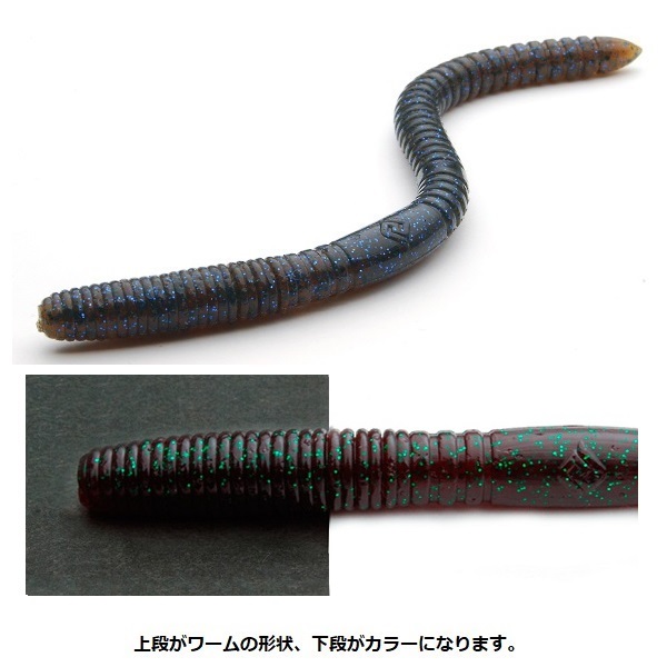 RAID JAPAN初となるストレートワーム(WHIP CRAWLER)に求めたものは、あらゆるリグに対応するオールマイティー性能。ストレートワームの命とも言える(素材の張り)を殺す事なく、(硬過ぎず柔らか過ぎない)、(太すぎず細すぎない)、(重過ぎず軽過ぎない)ベストなバランスを導き出し、使用するリグや釣り場の状況さえも選ばない徹底したオールマイティー性能が持ち味です。