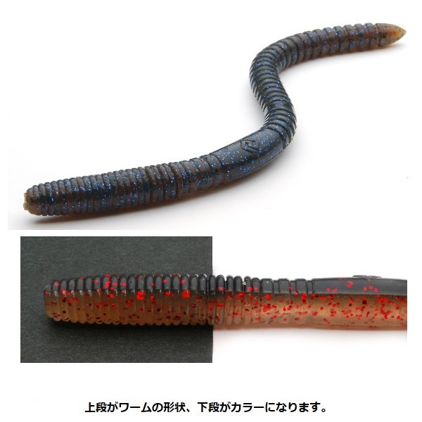 RAID JAPAN初となるストレートワーム(WHIP CRAWLER)に求めたものは、あらゆるリグに対応するオールマイティー性能。ストレートワームの命とも言える(素材の張り)を殺す事なく、(硬過ぎず柔らか過ぎない)、(太すぎず細すぎない)、(重過ぎず軽過ぎない)ベストなバランスを導き出し、使用するリグや釣り場の状況さえも選ばない徹底したオールマイティー性能が持ち味です。