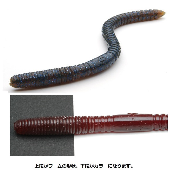 マッディなフィールドや、アピール力を高めたい場合にベストなセッティングです。フラット面が水を受ける抵抗感によってワームの移動距離を抑えるため、魚の低活性時などに特に効果を発揮します。また、縦の溝が入った三角形の頂点をまたぐ様にフックをセットすれば、水を切りながらハイピッチスイムするタイトロールアクションを発生。水質がクリアなフィールドや、スレ切った魚をサイトフィッシングで狙うような場合に、控えめなアクションでバイトに持ち込むことができるセッティングです。このようにウィップクロウラーは、魚の活性や様々なフィールドコンディションに合わせて、1本のボディで的確にアジャストできる懐の深さを持ったストレートワームに仕上がっています。※掲載している商品の画像は代表画像を表示しています。また実物と色が違って見える場合があります。あらかじめご了承下さい。