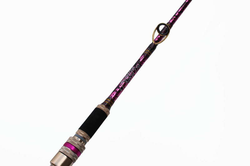 チップ:黒/ピンクプルトス(オプション) ガイド下:黒/ピンクプルトス ガイド止め:032 ワンポイント:011×2(オプション) ガイド、リールシート、バット:ゴールド ATプレートピンク(オプション)
