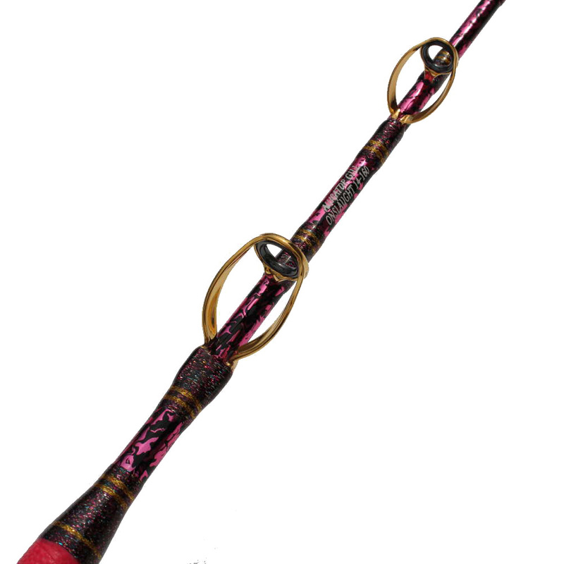 品番:14−160 全長:1.6m 継数:1本 仕舞寸法:1.6m 自重:約500g 先径:2.7mm 元径:12.0mm 錘負荷:100〜250号 適合ハリス:50号 <br><br> カラー詳細<br> チップ:黒/ピンクプルトス(オプション) ガイド下:黒/ピンクプルトス ガイド止め:032 ワンポイント:011×2(オプション) ガイド、リールシート、バット:ゴールド ATプレートピンク(オプション)