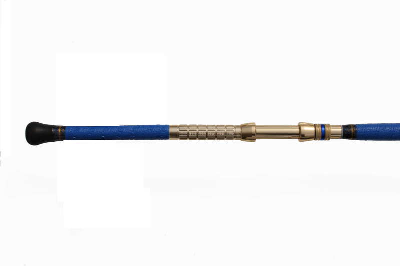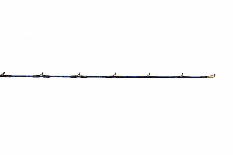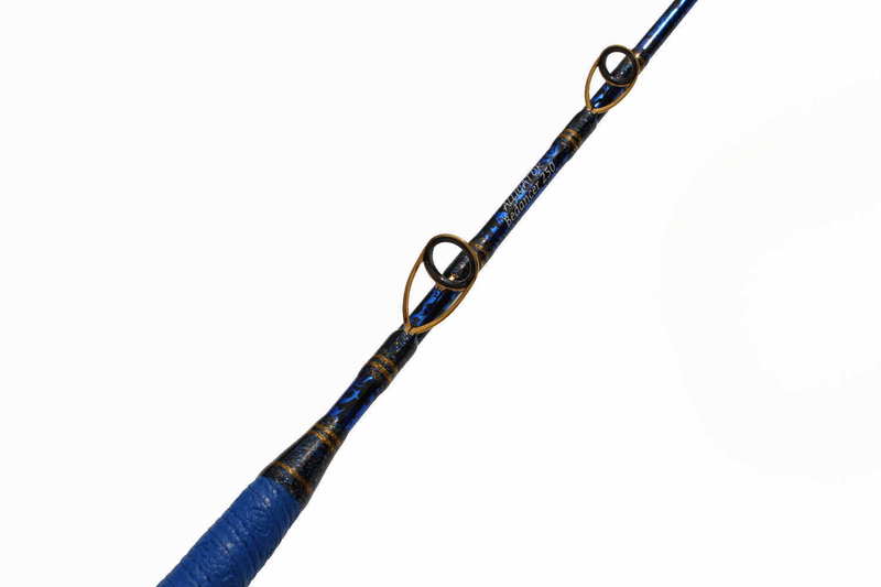 チップ:黒/青プルトス(オプション) ガイド下:黒/青プルトス ガイド止め:033 ワンポイント:011×2(オプション) ガイド、リールシート、バット:ゴールド ATプレート青(オプション)