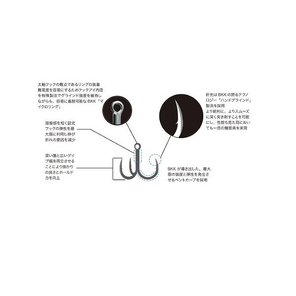 Raptor-Zは世界中のモンスターフィッシュを『確実に獲る』為に開発された世界基準のルアー用トレブルフックです。 不意な大物、怪魚、マグロやGTにまで対応できるスペックに仕上げています。 フックアップ率、貫通力、防錆力、全てを極限まで高めるBKKのテクノロジーを採用。最先端の熱処理を加え高次元の弾性・復元力を実現しました。 コーティング剤としてBKK独自開発の『Ultra-Antirust』を使用。高度の防錆性があり、最善状態を長時間保ちます。 全世界対応トレブルフック『Raptor-Z』究極の機能美を是非体験してください。