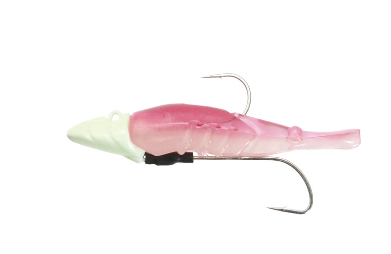 「デカハネエビヘッド 太刀魚仕様」1個 + 「デカハネエビ 太刀魚仕様」3本セット。あらゆるフィッシュイーターを仕留めてきたデカハネエビセットを太刀魚向けに仕様変更。デカハネエビヘッドにアンダーアシストフックを搭載したことで、フッキング率が大幅に向上しました。(掛かり抜群のオーナーばり製太刀魚サーベルフックXを採用。) ヘッドには高輝度夜光カラーをペイント。ワームにはマテリアルをより硬化した上で集魚剤を添加。太刀魚はもちろん、ヒラメやマゴチなどのフラットフィッシュに対しても威力を発揮します。