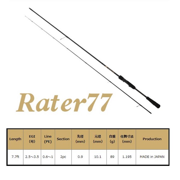 全長:7.7ft 継数:2ピース 仕舞寸法:1.195mm 自重:89g