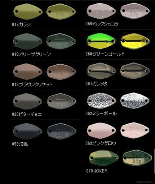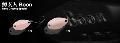 今までのトラウトフィッシングにおけるボトムの釣りの基本は、(止めて動かすをどうアクションさせるか)という一点に尽きましたが、この(鱒玄人ブーン)は、ボトムでのリトリーブ、すなわち巻いて釣るという新たなアプローチを提案します。使い方は着底後、底付近を探索する様に、ゆっくりリトリーブして誘い、食わせます。もちろん、止めを効かせたストップ&ゴー、バンピング、シェイキングなどのアングラーからの入力にも高次元に対応。ボトムを攻略するために小ぶりかつ肉厚のボディシェイプに仕上げてあるので、逆風下でもロングキャストを可能にしています。ボトムを手返しよくリーリングで攻略する、新たなカテゴリーのスプーンです。 ボトムクルーズバランス画像左が鱒玄人Boon 3.5g、右は鱒玄人Weeper 1.5g。シルエットサイズが近い2アイテムだが、倍以上のウエイト差を生み出す板厚の違いに注目。この水受け面積と重さのバランスで、浮かせない巻き(ボトムクルーズ)を可能にしています。浮き上がりを抑えたボトム専用設計モデル。 分厚い板厚とスモールシルエットで抜群な遠投性能を発揮。 リトリーブ、シェイク、リフト&フォールと幅広く対応。 低活性時や放流後の落ち着いた魚も効率よく攻略。