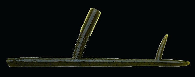 根掛かりにくく、ビッグフィッシュとのファイトにも耐えられるオフセットフックと、ヘビーウエイトのネイルシンカーをセットするヘビーウエイトネコリグを前提に開発された新感覚のソフトベイトが「サンカクティーサン」。 オフセットフックとネイルシンカーがそれぞれ背骨の役割を果たすので、カバーなどに引っ掛けて一点シェイクすると、テール、ネイルシンカー挿入部、フック部の各パーツが別々の方向に動くという今までにないハイアピールアクションを発生させ、スレたビッグフィッシュにも口を使わせます。また、ストレートリトリーブではボディ全体を震わせてバスにアピールするので、一般的なストレートワームと同様のリグで使用した際にもハイパフォーマンスを発揮します。ベイトフィネスだけでなく、スピニングロッドでPEラインを使用したパワーフィネスにも対応。 トーナメントやメディアで活躍する伊藤巧が、釣果に困ったときの切り札として長年自作して使用してきた信頼のアイテムです。