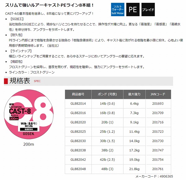 ゴーセン CAST8 200m 48lb(3)
