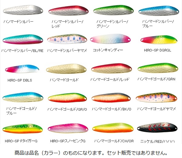 飛ぶ泳ぐ釣れる! 世界初のテーパーブレードスプーン スプーンブレードの肉厚をヘッドからテールに向けて徐々に厚くテーパーさせる独自の製法「テーパーブレードデザイン」。これにより生じるテール重心のバランスとカップ形状があいまって、通常では動かないようなデッドスローリトリーブ時にも華 麗なるアクションを 生み出します。また、テール重心のバランスは飛行姿勢を安定させ、飛距離も抜群です。 (テーパーブレード)スプーンの肉厚がヘッドからテールにかけて厚くなる独自のテーパーデザインは、ティムコのオリジナルデザインです。このテーパーデザインが従来のスプーンより飛距離を伸ばし、流れの早い河川や湖のボトムなどで浮き上がりにくくなる特徴があります。 (ブレードスライドアクション)スプーンの肉厚がヘッドからテールにかけて厚くなる独自のテーパーデザインは、ティムコのオリジナルデザインです。このテーパーデザインが従来のスプーンより飛距離を伸ばし、流れの早い河川や湖のボトムなどで浮き上がりにくくなる特徴があります。 (ハイクオリティ)スプーンの肉厚がヘッドからテールにかけて厚くなる独自のテーパーデザインは、ティムコのオリジナルデザインです。このテーパーデザインが従来のスプーンより飛距離を伸ばし、流れの早い河川や湖のボトムなどで浮き上がりにくくなる特徴があります。 (重さ:サイズ)3.5g: 39mm 5g: 47mm 7g: 56mm 10g: 63mm 14g: 63mm 18g: 63mmサクラマスや湖沼型トラウトなど大型を意識した14g、18gは、10gと同じサイズのまま肉厚を 増すことでウェイトアップしているので、操作性能を損なうことなく、急流の中でも浮き上がらず確実にボトムをトレースできます。仕上がりの美しさにもこだ わり、この輝きが鱒たちを魅了します。 ※スプリットリングのみ、フックは装着しておりません。※掲載している商品の画像は代表画像を表示しています。また実物と色が違って見える場合があります。あらかじめご了承下さい。