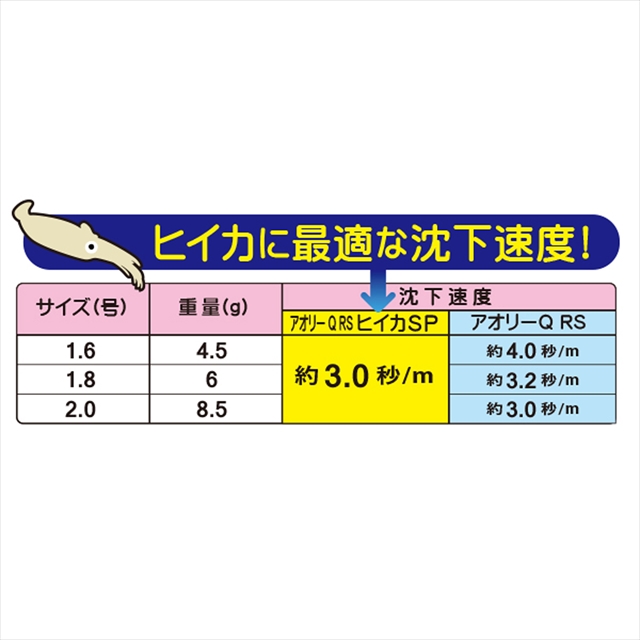 ローリングシャフト(RS)なら、 簡単イレギュラーダート!グローオーロラアイと夜光ボディで ハイアピール!!ヒイカ専用スナッグレスシンカー搭載。ヒイカに最適な沈下速度を実現した、ヒイカスペシャル!!